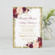 Carte d'invitation pour la Parties scintillant de la nuptiale d'aquarelle Burgundy Marsala Floral and Gold - Script Bourgogne