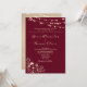 Elégante faire-part de mariage bordeaux avec lumières à cordes romantiques, dentelle fleurie or rose et typographie de script moderne. Un choix parfait pour les mariages rustiques d'automne ou d'hiver, ce design apporte chaleur et charme à votre célébration. Entièrement personnalisable avec les noms, dates et détails du lieu.