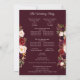 Un beau programme de mariage pour un beau mariage. Décoré de fleurs de pivoines roses et bordeaux, ce programme de cérémonie mariage de fleurs de marsala rose et bordeaux ajoutera des détails élégants ou modernes à votre journée spéciale. Disponible avec un arrière - plan blanc, rose, noir, bordeaux (marron) et bordeaux foncé. Voir notre collection de marsala bordeaux pour toutes les couleurs.