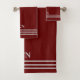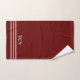 Cet ensemble de serviettes de bain bourgogne/rouge foncé avec des rayures grises claires est parfait pour presque n'importe quel décor. Monogramme avec vos initiales. L'ensemble comprend une serviette de bain, un gant de toilette et une serviette de main. Idéal comme cadeau ou pour acheter de nouvelles serviettes pour votre salle de bain.