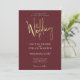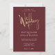 Une invitation moderne avec une feuille d'or en faux clair avec des polices blanches élégantes sur un arrière - plan bordeaux. Vous pouvez ajouter vos détails dans le menu personnaliser. Cette invitation fait partie d'une belle suite de mariage assortie qui peut être entièrement personnalisée.