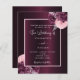 Un arrière - plan bordeaux profond décoré de fleurs bordeaux et roses. Personnalisez et ajoutez vos noms et les détails du mariage. Lettres blanches.