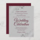 Ces invitations de mariage abordables et abordables sont le choix parfait pour la classe, le style et la beauté sur un budget. Le design présente du texte de couleur bordeaux sur un arrière - plan gris avec des boucles et des tourbillons en faux feuille d'argent ornés dans les coins. La typographie comprend des lettres de script sophistiquées pour un style à la fois simple et élégant. Merveilleuse façon d'invitation vos amis et votre famille pour partager votre joie dans votre journée spéciale sans casser la banque.
