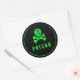 Crâne et os croisés noirs et verts sur autocollant rond. Grand format idéal pour bar halloween ; coller sur vos bouteilles de vin ou autres bouteilles d'alcool pour un thème halloween. Plus de couleurs disponibles.