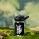 Une bouteille d'eau claire avec une illustration détaillée de colibri entourée de motifs floraux.