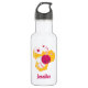 Une bouteille d'eau à l'image douce d'une abeille rayée rose et blanche. Un morceau de nid d'abeille jaune derrière. Une lettre scellée avec un coeur et un groupe de coeurs flottants font également partie du design.