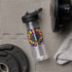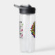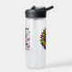 Un magnifique tournesol moderne et élégant imprimé arc-en-ciel et léopard avec des papillons et des coeurs soulever des citations motivationnelles nom personnalisé sur une bouteille d'eau d'arrière-plan blanc...C'est un cadeau unique magnifique et mignon pour les enfants qui aime les fleurs colorées avec des citations motivationnelles. Vous pouvez modifier le nom ou supprimer en cliquant sur personnaliser les options.