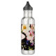 Bouteille D'eau Aquarelle rose Roses jaunes sur noir, Monogramme