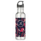 Ara Parrot Rouge Tropical Leave Motif Bouteille d'eau Monogramme. Ara motif sur bleu foncé arrière - plan avec des feuilles tropicaux dans les tons vert, rouge et beige. Illustration dessinée à la main. Ajoutez votre monogramme.