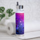arrière - plan bleu rose Abstrait avec points et étoiles lumineux.