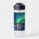 Belle bouteille d'eau avec belle Aurora borealis sur le cabine d'hiver.