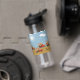 Bouteille d'eau avec un design de camions et de fleurs sur un ciel de conception abeille en bleu avec un soleil brillant et des nuages/ Le fond est bronzé. Le nom sur la bouteille peut être changé. Merci à Creative Fabrica pour certains des éléments du design.