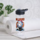 Le design est composé d'un baseball avec un visage, portant un chapeau de Père Noël et enveloppé de lumières colorées de Noël. L’expression du baseball est neutre, avec deux yeux simples et une ligne droite pour une bouche. Le mot "HALLOWEEN" est imprimé au-dessus du baseball en gros caractères oranges et gras. L'arrière - plan noir contraste avec les couleurs vives du texte et des lumières de Noël, créant un design festif et ludique qui combine des éléments d'Halloween et de Noël.