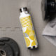 Cette bouteille d'eau est décorée d'un motif de style Bauhaus géométrique en jaune, gris et blanc moutarde pour un look moderne.