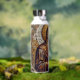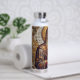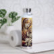Vierge Marie avec Bébé Jésus dans une mosaïque en or, bouteille d'eau noire et blanche.