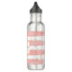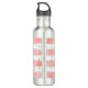 Bouteille d'eau avec un élégant motif. Dotée de rayures rose vif et de parties scintillant de confettis en faux or éparpillés un peu partout. Un carré blanc avec une fausse bordure en feuille d'or superposée, avec votre texte personnalisé à l'intérieur.