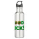 Un Leprechaun amusant en costume vert avec barbe rouge et une pièce d'or à la main vous souhaite bonne chance !