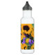 Des tournesols d'or sont placés par des pourpres et des verts pour créer une belle et gaie bouteille d'eau !