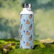 Bouteille D'eau Chats en boîte et gouttes de lait sur bleu