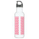 Hip et moderne Chevron Liberty Water Bottle tendance. Cette bouteille cool présente un motif en zag zig en chevron rose et blanc. Ajoutez du texte à cette conception pour lui donner une touche personnelle.