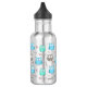 Jolies petites chouettes en vert et bleu avec des bâtons fruités près d'elles. Customisez à votre goût avec des images ou du texte supplémentaires, changez de couleur arrière - plan, etc.