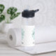 Bouteille d'eau blanche verte avec citation Phrase Relax et art floral.