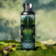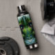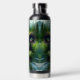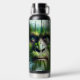 Illustration de Bigfoot dans une double exposition cool avec la forêt, la rivière et les montagnes. Bouteille d'eau à thème cool Sasquatch.