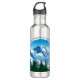 Bouteille d'eau customisée pour un chalet de ski ou une station dans les montagnes du Colorado ou un beau cabine dans la forêt. Ce design cool présente un joli dessin de montagnes enneigées en face de sapins verts. Grand marketing nature pour un hôtel ou location de vacances.