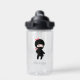 La mignonne fille de dessin animé ninja est habillée tout en noir mais pour un arc rose sur son masque de tête. Le katana d’épée japonaise traditionnel peut être vu attaché sur son épaule, sa poignée est également rose.