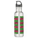 Bouteilles d'eau avec un mignon motif de pastèque. Croûte verte en couches de rayures avec une couche de rayures roses avec des graines noires à l'intérieur. Amusement et design estival. Un rectangle superposé avec un nom personnalisé à l'intérieur.