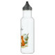 Bouteille d'eau avec un délicieux dessin d'une paire de renards avec un oiseau sympathique à proximité. Entouré de cônes de houx et de pins et d'autres feuillages d'hiver.