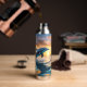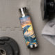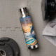Pour ceux qui aiment la mer et toute sa beauté, cette bouteille de boisson présente une image époustouflante d'un dauphin bleu qui bondit au-dessus de l'eau. Un coucher de soleil éclatant d'orange et d'or se profile à l'horizon. Uniquement beau !