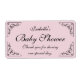Frottez et fleurissez étiquettes de bouteille d'eau de baby shower. Autocollants de biberon rose pastel personnalisés avec coins tourbillonnant. Modèle do-it-yourself personnalisé avec typographie stylisée de calligraphie. Design vintage et neutre pour célébrer la naissance d'une nouvelle petite fille ou d'un nouveau garçon. Utilisez comme décor de table classe ou merci pour les invités à la fête. Couleur arrière - plan personnalisable, c'est-à-dire bleu pastel ou jaune doux. Merci de partager notre journée spéciale.