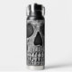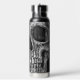 Macabre gothique cool texture grunge noir et blanc imprimé demi tête de crâne. Déplaisant, mauvais, éffrayant, sinistre bouteille d'eau en acier inoxydable de 25 onces. typographie customisée. Vaisselle tendance. Unique, moderne, effrayant design Halloween. Copyright de l'image Marg Seregelyi Photography.