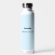 Cette bouteille d'eau isolée est présentée en blanc avec un exemple de nom personnalisé de demoiselle d'honneur.