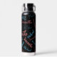 Bouteille D'eau Deux noms couples motif monogramme bleu rose clair