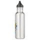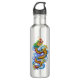 Cette bouteille d'eau en acier a un dragon coloré et détaillé dans les nuances de l'or, du vert, de rouge et bleu et est entourée par éclabousse de l'eau bleue.