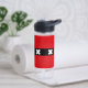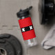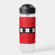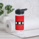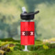 Bouteille d’eau avec design avec drapeau d’Amsterdam, capitale de Pays-Bas, drapeau rouge et noir avec trois croix blanches de Saint Andrew au centre