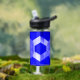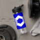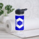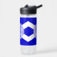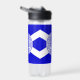 Bouteille d'eau avec l'un des deux drapeaux officiels de Charlotte, Caroline du Nord. Un drapeau bleu avec un sautoir blanc (Croix de Saint-André) et un sceau
