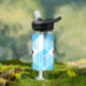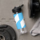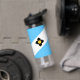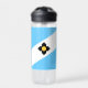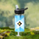 Bouteille d'eau avec le drapeau de la ville de Madison, Wisconsin; drapeau bleu clair et blanc avec une croix noire et cercle jaune au centre