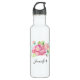 Une bouteille d'eau personnalisée avec une belle et élégante aquarelle créée bouquet floral. Fleurs de jardin roses entourées de feuillage vert clair.