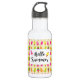 Bouteille d'eau avec l'image d'un motif d'été de popsicles et de crème glacée en aquarelles. Bonjour été écrit dans une police tendance amusante.