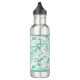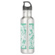 Bouteille D'eau En Acier Inoxydable Monogramme Floral Vert Mint Moderne Avec Nom