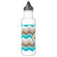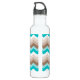 Bouteille D'eau En Acier Inoxydable Monogramme moderne Chevron Brown Turquoise