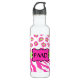 Profitez de votre boisson de cette bouteille d'eau amusante et élégante! Les rayures colorées de zèbre et les peaux de guépard pour le design graphique est l'une des tendances les plus chaudes de l'art et du design, et est extrêmement populaire de la mode à la décoration maison. Cette collection sophistiquée rose fuchsia et blanche avec zèbre vert citron et papier guépard est l'une des nombreuses combinaisons de couleurs disponibles. Un emblème vert citron crée une zone de personnalisation. Il est entièrement personnalisable pour inclure votre nom, vos initiales de monogramme, votre nom commercial ou d'autres mots pour transmettre votre message. Allez-y avec ces modèles de peaux sauvages !