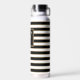 Détendez votre soif avec style grâce à cette bouteille d'eau personnalisée et personnalisée ! Lettre d'or F monogramme décoré avec un magnifique arrangement floral moderne. Le nom personnalisé en bas est écrit avec une belle écriture de type script, ce qui en fait un cadeau unique et accessoire personnalisé pour vous ou un ami. Elégant et moderne noir blanc rayures arrière - plan.