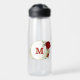 Bouteille d'eau magnifique avec des fleurs rouges et blanches et des feuilles vertes
