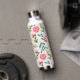 Cette bouteille d'eau a un arrière - plan blanc aux fleurs roses.