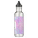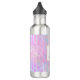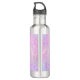 Bouteille d'eau avec un motif arrière - plan abstrait. Les aquarelles rose violet et bleu composent ce design artistique qui présente des formes verticales rectangle sur un arrière - plan doux et marbré. Un carré superposé avec une fausse bordure en feuille d'or, votre texte personnalisé à l'intérieur.