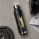 Cette bouteille de boisson comprend un golfeur de silhouette dorée en pleine balançoire. Votre monogramme en or assorti est encadré par de fines lignes d'or. Ce design est le meilleur sur la couleur noire de la bouteille. Assurez-vous de voir les produits correspondants, y compris une serviette de golf, dans notre magasin.